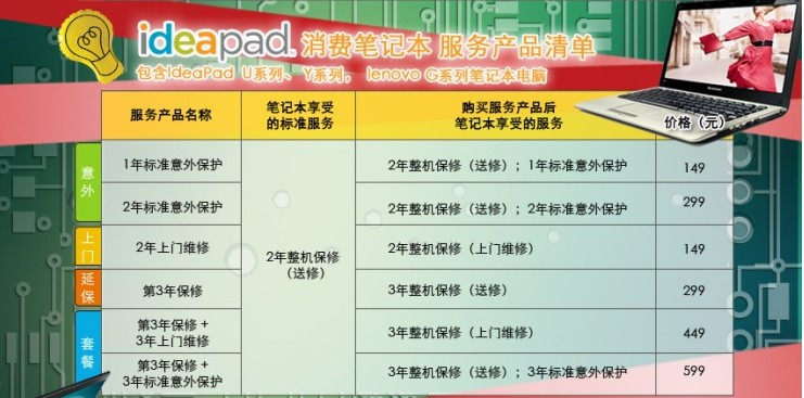 联想推出意外保服务,万一本本不小心“泡个澡”,或者意外“撞伤”了,屏幕“跌坏”了,怎么办呢?不用担忧哦,联想意外保护服务拯救您的本本哦。 假如您购买了意外保的话,这种情况也可以免费保修哦,修不好还可以直接换呢。意外保,让您的本本享受更多的呵护,即使意外发生,也不怕不怕啦!